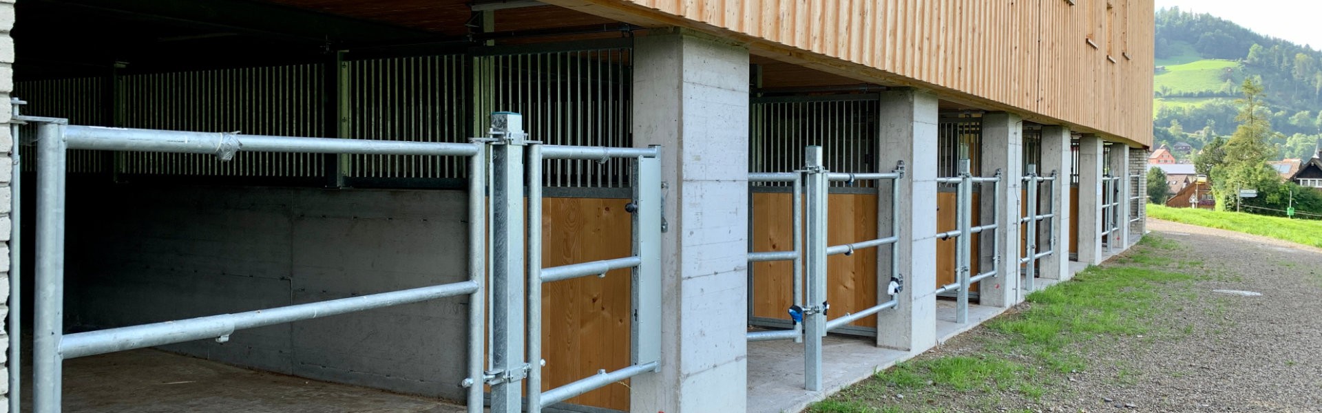 Auch die Pferde unserer Gäste sind auf dem Reithof Neckertal herzlich willkommen und bestens untergebracht. Für Gastpferde stehen sechs sehr grosszügige Gästeboxen mit einer Fläche von jeweils rund 30 m² zur Verfügung. Dadurch ist es möglich, bei Bedarf auch mehrere Pferde gemeinsam in einer Box unterzubringen. Von den Boxen aus besteht direkter Blick auf den Reithof.