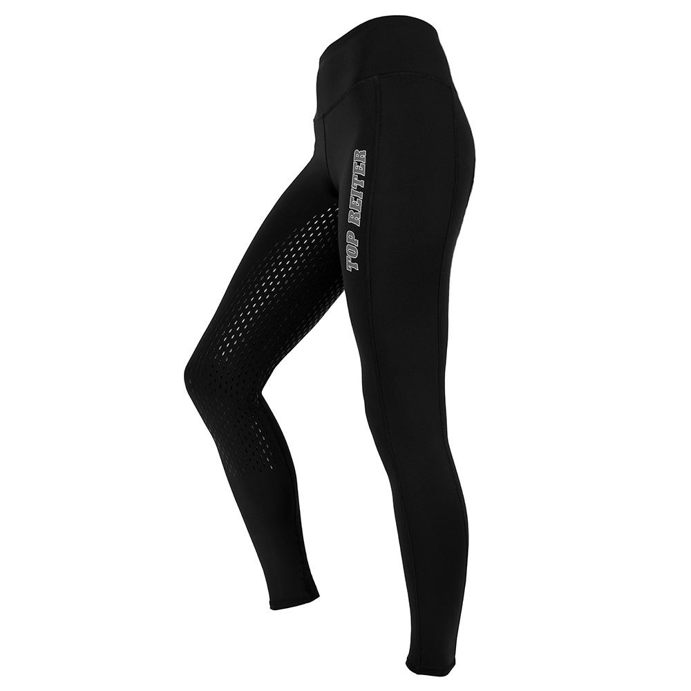 Die Leggins: Super bequem, überragender Stretchanteil, hohe Taille, horizontale Rückentasche mit YKK-Reißverschluss, Vollbesatz-Silikon, TOP REITER Logo hinten und vorne am Bein.